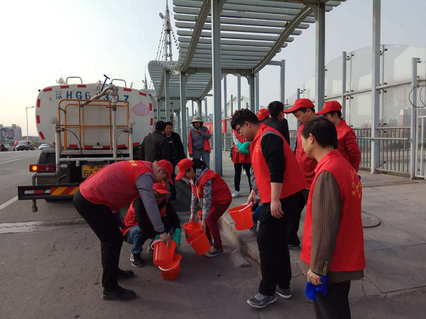 为保障活动开展,市城管局专门出动4台洒水车给予大力支持。整个劳动场面如火如荼,大家分工协作,干劲十足,一个半小时就完成了劳动任务。