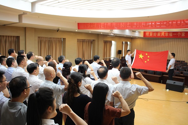 2018年6月22日下午,市房产管理中心领导班子、机关全体及所属单位班子举行了庄严的宪法宣誓仪式。活动在雄壮的国歌声中开始,大家在领誓人的带领下,面对国旗、手抚《宪法》郑重承诺:“我宣誓:忠于中华人民共和国宪法,维护宪法权威,履行法定职责,忠于祖国、忠于人民,恪尽职守、廉洁奉公,接受人民监督,为建设富强民主文明和谐美丽的社会主义现代化强国努力奋斗!”