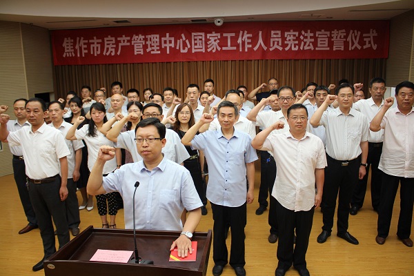 开展宪法宣誓活动,是市房管中心学习宪法、尊崇宪法、遵守宪法、维护宪法、运用宪法,在全中心弘扬宪法精神的重要举措,是落实宪法规定的具体行动。通过宪法宣誓仪式,市房管中心的国家工作人员接受了一次心灵的洗礼和法制的教育,进一步增强了依法行政、忠诚履职的自觉和担当。大家纷纷表示,一定要以此次宪法宣誓活动为契机,紧密结合全市开展的“转变作风抓落实、优化环境促发展”活动和单位实际,加强学习,严格要求,自觉廉洁从政,努力用扎实的作风和实在的工作成效助推房管事业更好更快发展,为“四个焦作”建设和我市早日跻身全省第一方阵不断做出新贡献。